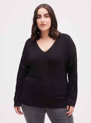 Polera Hombro Caído y Aplicación Cadena | Paris