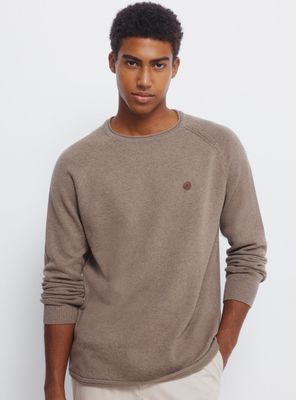 Jersey en 100% algodón con cuello y bajo en rulo. puños en canalé. etiqueta decorativa efecto piel en el pecho.