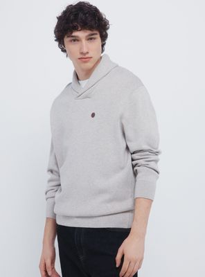 Jersey en 100% algodón.cuello smoking. bajos y puños en canalé. detalle de etiqueta decorativa efecto piel.