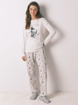 Pijama 100%algodón de manga larga y pantalón largo con acabado perchado. ideal para estar en casa y dormir súper calentita. parte de arriba de escote redondo y posicionado de snoopy central. pantalón fluido con estampado de rayas y snoopy. cinturilla elástica regulable mediante cordón a tono. al elegir nuestros productos de algodón, estás apoyando nuestra inversión en la iniciativa better cotton.