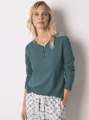 Polera de manga larga, lisa, en tejido 100% algodón. llévala con el pantalón de la colección que más te guste y elabora tu propia combinación. ¡así multiplicas opciones! con escote en viveadoy tapeta frontal de botones nacarados. al elegir nuestros productos de algodón, estás apoyando nuestra inversión en la iniciativa “better cotton”.