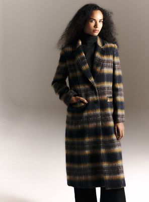 Abrigo Largo de Paño Cepillado con Diseño a Cuadros | Paris