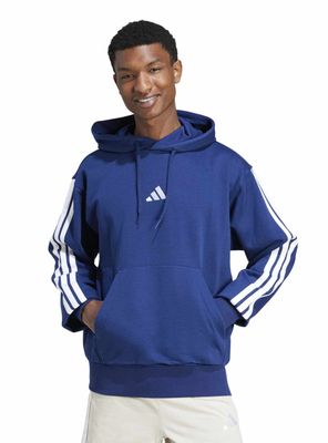 Polerón Hoodie Hombre Adidas Essentials 3 Tiras Azul