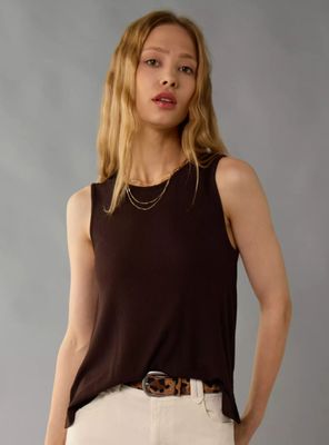 Suavidad y ligereza diseñadas para acompañarte todos los días. tela soft & sexy con acabado lavado para una sensación extra suave sobre la piel. tejido acanalado que aporta textura y fluidez. cuello redondo clásico que combina fácilmente con cualquier look.