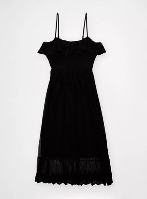 Vestido Midi Negro Con Forro
