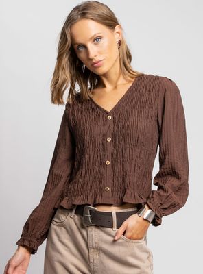 Blusa Boho con Fruncido y Manga Larga | Paris