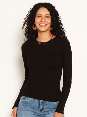 Polera Manga Larga Escote Ojal Negro