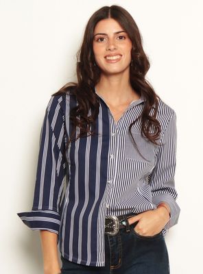 Blusa Manga 3/4 Listada Abotonada