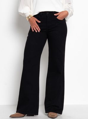 Jeans Wide Leg Tiro Alto Pretina Básica con Botón