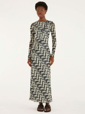 Vestido Midi Detalle Cruzado en Escote y Diseño de Palmeras