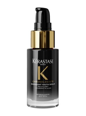 Overnight Youth Serum de Kérastase es un tratamiento nocturno corrector de la edad, infundido con Pro-Xylane y Alga Ochrophyta, diseñado para revertir los signos visibles de envejecimiento durante la noche. Enfocado en tratar la sequedad, la opacidad, el frizz y la pérdida de volumen y grosor, este sérum sin enjuague entrega un cuidado intensivo noche. Solo una pulsación para entregar potentes activos en profundidad al cabello.
