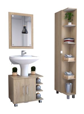 Combo Gabinete Espejo + Mueble Lavamanos + Mueble Auxiliar TuHome Bath 300