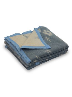 Frazada Lana 1.5 Plazas Celeste Floreado