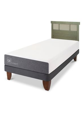 Cama Europea Smart 1.5 Plazas + Respaldo Dublín Olivo | Paris