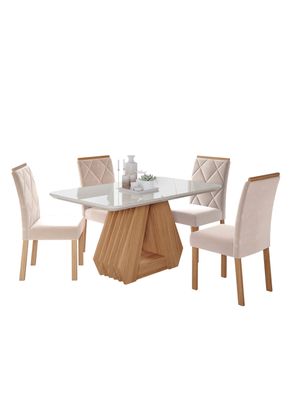 Juego Comedor Agata + 4 Sillas Fernanda Beige