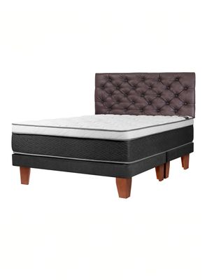 Cama Europea Everest King + Set Muebles Capitoné