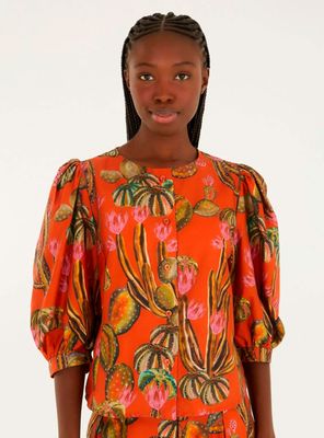 Blusa Full Estampada con Vuelo en Mangas