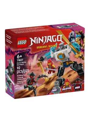 El juguete Lego Ninjago Armadura Robótica de Combate de Zane (71827) invita a los niños y las niñas a partir de 6 años a recrear la emocionante temporada 3 de la serie para televisión Ninjago, El renacer de los dragones. Este set de construccióncontiene un meca Ninjago con brazos, piernas y manos articulados, parte superior del cuerpo que gira 360 grados, pecho que se abre para colocar una minifigura dentro y 2 grandes espadas. Este juego LEGO viene con 3 minifiguras de personajes del univers o Ninjago, Zane con 2 shurikens, Wyldfyre con una catana de cristal y Drix, el Maestro del Enjambre de los Cinco Prohibidos, con 2 hoces para representar aventuras en el mundo fusionado de Ninjago. Los sets Lego Ninjago incluyen mecas, dragones y templos para ofrecer a los fans la oportunidad de interpretar la acción. Para crear cada juego ninja, tu peque y tú contáis con la ayuda de la app LEGO Builder, vuestra guía en una sencilla e intuitiva aventura de construcción. Juguete Lego Ninjago basado en el juego simbólico, Con la Armadura Robótica de Combate de Zane, los niños y las niñas a partir de 6 años pueden recrear las escenas de la temporada 3 de la serie para televisión Ninjago, El renacer de los dragones Meca articulado de juguete, La Armadura Robótica de Combate de Zane cuenta con brazos, piernas y manos articulados, parte superior del cuerpo que gira 360 grados, pecho que se abre para colocar una minifigura dentro y 2 grandes espadas 3 minifiguras Ninjago, Este set de construcción LEGO® viene con Zane, con Wyldfyre y con el Maestro del Enjambre Drix para que los fans de los ninja puedan interpretar emocionantes batallas Armas de juguete, Cada personaje del universo NINJAGO® en formato de minifigura tiene un elemento que representa un arma para maximizar las posibilidades de juego (Zane tiene 2 shurikens, Wyldfyre tiene una catana de cristal y Drix tiene 2 hoces) Idea de regalo ninja para peques, Además de proporcionar una divertida experiencia de construcción y juego, este pequeño set LEGO® es una fantástica idea de regalo para niños y niñas a partir de 6 años con pasión por las aventuras de los ninja Amplía las aventuras ninja, Descubre más juguetes Lego Ninjago (sets a la venta por separado) con dragones, templos y vehículos Un universo de juguetes Lego Ninjago, Este set pertenece a una extensa colección de juguetes que transportan a los peques a un mundo de fantasía y juego imaginativo habitado por sus héroes ninja Medidas, La figura Armadura Robótica de Combate de Zane de este set de construcción infantil Lego Ninjago compuesto por 92 piezas mide aproximadamente 10 cm de altura.