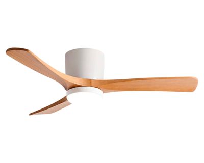 Ventilador de techo sumo con aspas de madera led blanco, diámetro de 52'' con control de velocidad, temporizador, encendido/apagado de luz, temperatura de color, y dirección de giro adelante/reversa, temporizador de 1 hora, 4 horas y 8 horas, altura mínima de instalación de 2.3 m desde el suelo, dirección de giro hacia adelante (forward) y en reversa (reverse)