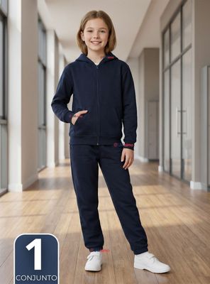 Conjunto Escolar Buzo Pantalón Y Polerón 100% Algodón Niña Unisex Color Azul 3 a 16 años | Paris