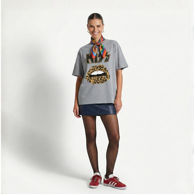 Polera Manga Corta Lips Gris Kiss | Paris