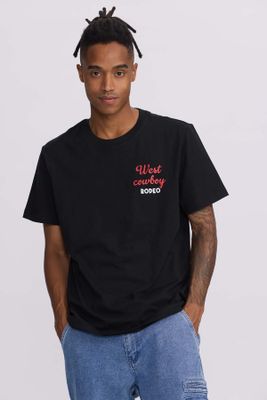 Polera Hombre Doble Print Wester Negro