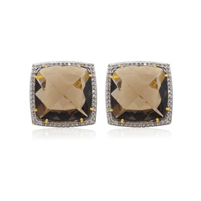 Aros de Diamante en Oro 18kt con Cuarzo Fumé