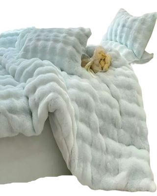 COBERTOR IMITACION DE PIEL DE CONEJO CON CHIPORRO CELESTE | Paris