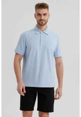 Polera Hombre Slim Cuello Camisero Celeste | Paris