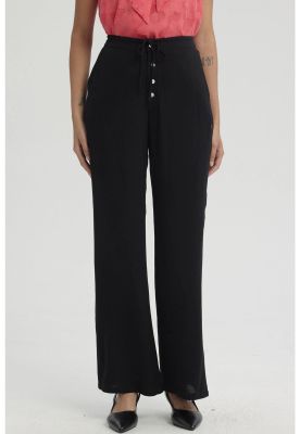 Pantalón Mujer Palazzo Pretina Ancha Negro