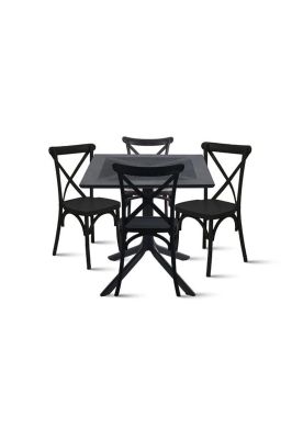 Mesa restaurant 80x80 Polipropileno + 4 Sillas Crossback Danubio - Negra | Paris