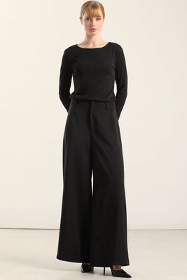 Pantalón amplio, tiro alto, negro Liola