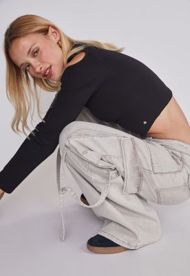 Jeans Mujer Cargo Tiras Gris Sioux | Paris