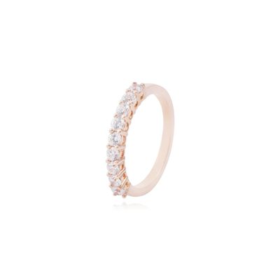 Diseño clásico en formato medio cintillo, elaborado en oro miel 18kt. Ideal como anillo de compromiso, aniversario o para quienes valoran la elegancia discreta y atemporal.