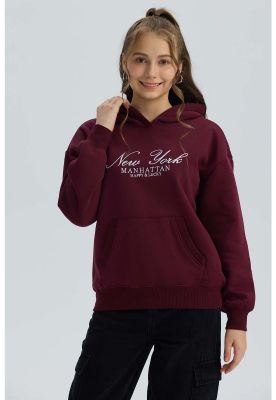 Polerón con gorro burdeo de niña