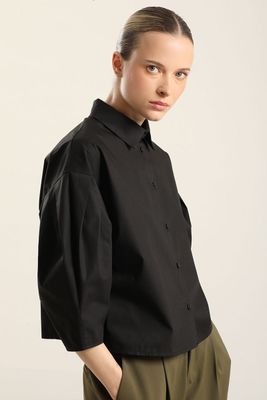 Blusa poplin, pliegues, negro Liola | Paris