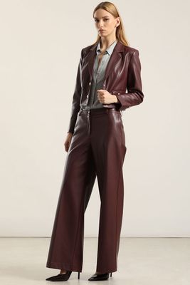 Pantalón ancho, tiro alto, efecto cuero, burdeo Liola | Paris