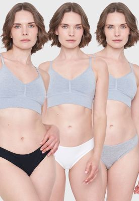 Calzón Mujer Tripack Cotton Mix Negro/Gris/Ecru Corona | Paris