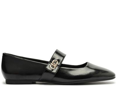 Ballerina de cuero charol negro, ideal para atuendos formales y casuales.