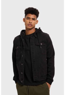 Chaqueta Hombre Denim Con Gorro Negro