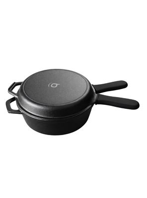Genérico - Dutch Oven De 26 Cm Con 2 Sartenes De Hierro Fundido Y 2 Grip, Negro