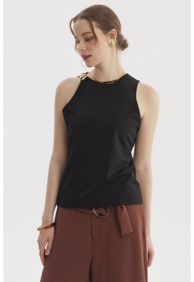 Top aplicación metálica liola mujer negro