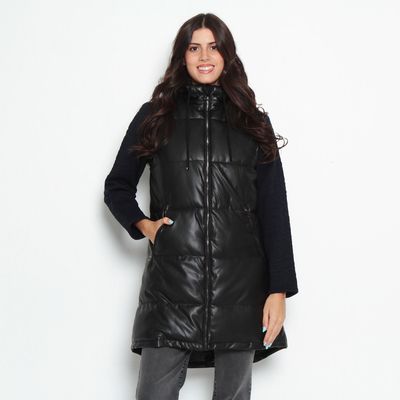 Parka Manga Larga Puffer Pu Con Capucha