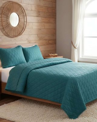 Cobertores de Verano-Primavera con Diseño de Pompon (2 plazas) azul