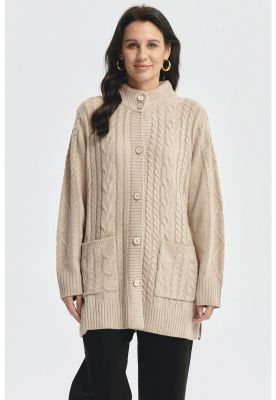 Sweater Mujer Largo Con Botón Beige | Paris