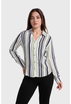 Blusa Mujer Satinada Abotonada Blanco