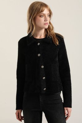 Cardigan Cuello Tejido Punto, Negro Liola