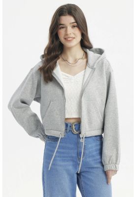 Polerón Mujer Zipper Crop Gris Melange - ll | Paris