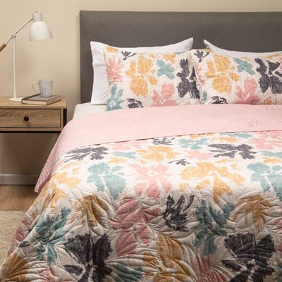 Cubrecama Quilt 2 Plazas Rosado Gris Reversible