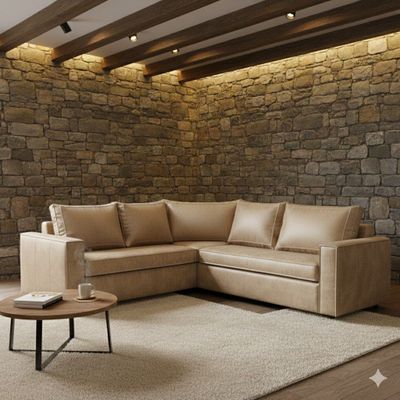SOFA SECCIONAL JACK CUERO BEIGE SINTETICO ENVEJECIDO Y ASIENTOS DE RESORTES POCKET | Paris